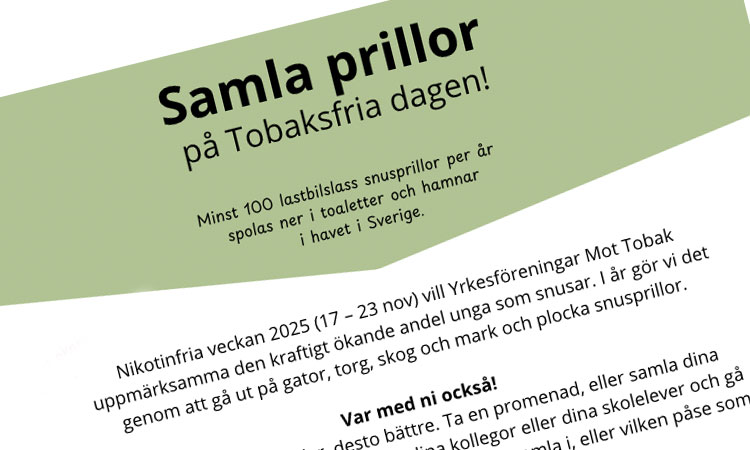 Nikotinfria veckan 2025 (17 – 23 nov) vill Yrkesföreningar Mot Tobak uppmärksamma den kraftigt ökande andel unga som snusar. I…
